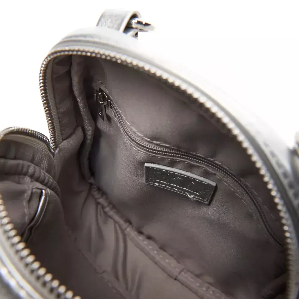 Material principal externo: PU.Medidas: 16x21x5,5 cm.Se accede mediante cierre.Correa de hombro ajustable.Forro interior textil.Bolsillo interno con cierre.